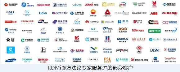 RDMI®(国际研发方法协会,The International Research and Development Methodologies Institute)致力于将全球领先企业在研发项目中起到关键作用的方法论进行研究、提炼、融合,并加以推广,以提升工程师的研发能力,从而提高企业的研发水平,助力企业开发出高质量的产品。RDMI®关注的研发方法论对应于解决企业研发过程中遇到的不同层面的问题,从战略层面到执行层面,从各个方面提高企业的研发水平。RDMI®关注的方法论包括但不限于NPI/IPD、DFSS(六西格玛设计)、专利战略、TRIZ(发明问题解决理论)、FMEA(潜在失效模式及后果分析)、DoE(试验设计)、创新降本等。目前,RDMI®已在广州、武汉、苏州、哈尔滨、成都、上海、香港等地设立了中心。
