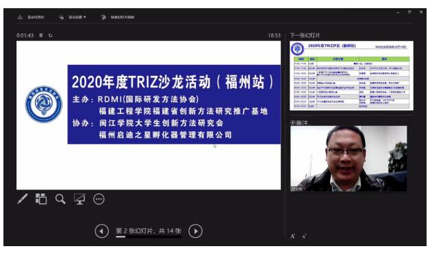 2020年10月15日TRIZ纪念日,福州TRIZ沙龙在RDMI国际研发方法协会和福建工程学院(福建省创新方法研究推广应用基地)主办,闽江学院大学生创新方法研究会和福州启迪之星孵化器管理有限公司协办下,在福州成功举行。本次TRIZ沙龙有幸邀请到华人唯一TRIZ五级孙永伟博士,福建省科技发展研究中心陈德金博士,福建工程学院伊启中和燕学博老师,金源泉科技副总工郑德谋,福州大学的刘晓敏、赵永翔和李梅芳三...